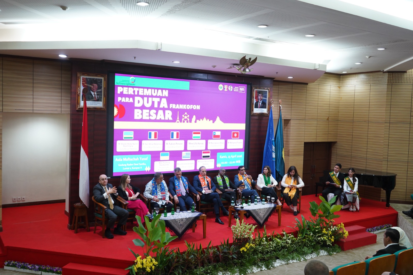 Jakarta, Humas UNJ – Pertemuan rutin tahunan Francophonie kembali di gelar di Aula Maftuchah Yusuf, Kampus A UNJ pada 23 April 2026 dengan bertema “La Semaine Francophonie & Rencontre des Ambassadeurs 2026”.