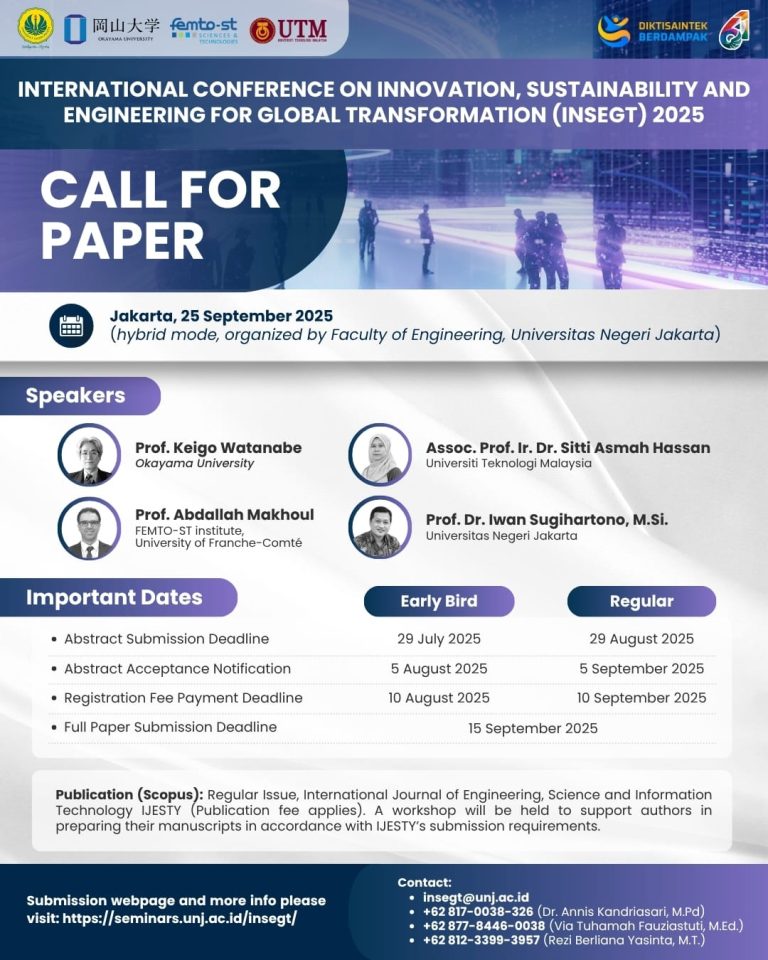 Jakarta, Humas UNJ — Universitas Negeri Jakarta (UNJ) menerima kunjungan delegasi dari Hebei Vocational University of Technology and Engineering, Tiongkok, pada Rabu (13/8/2025) di Ruang VIP Gedung Rektorat UNJ. Delegasi yang hadir terdiri atas Mr. Li Xianbin selaku Vice President,…