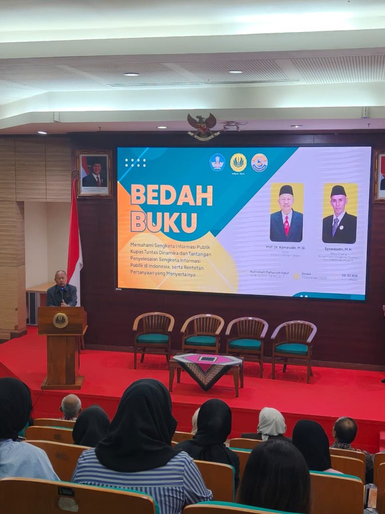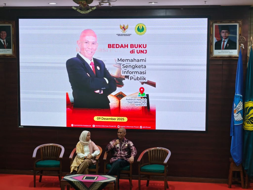 Jakarta, Humas UNJ — Universitas Negeri Jakarta (UNJ) menggelar diskusi publik dan bedah buku bertema “Memahami Sengketa Informasi Publik: Kupas Dinamika dan Tantangan Penyelesaian Sengketa Informasi Publik di Indonesia” pada Kamis, 9 Desember 2025, di Aula Maftuchah, Gedung Raden Dewi Sartika. Acara ini menghadirkan Syawaludin, Komisioner Bidang Penyelesaian Sengketa Informasi Komisi Informasi Pusat (KIP) Republik Indonesia, sebagai narasumber utama.