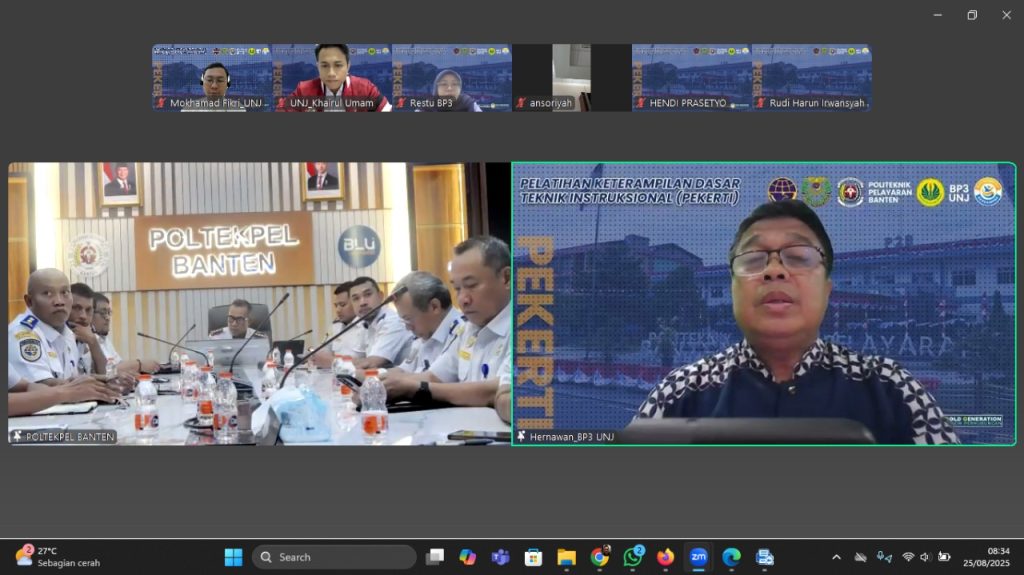 Jakarta, Humas UNJ — Badan Pengembangan Pendidikan dan Pembelajaran Universitas Negeri Jakarta (BP3 UNJ) menjalin kerja sama strategis dengan Politeknik Pelayaran Banten (P2B) dalam penyelenggaraan Program Peningkatan Keterampilan Dasar Teknik Instruksional (PEKERTI). Kolaborasi ini bertujuan untuk meningkatkan kompetensi pedagogik dosen serta mutu pembelajaran di perguruan tinggi, khususnya di bidang kemaritiman.
