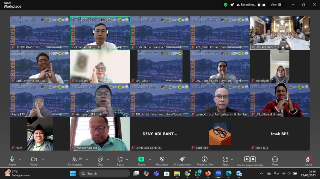 Program PEKERTI yang dilaksanakan secara daring ini berlangsung pada 25–29 Agustus 2025 dan diikuti oleh 20 dosen dari berbagai program studi di P2B. Para peserta mendapatkan bimbingan langsung dari dosen UNJ yang bertindak sebagai instruktur PEKERTI.