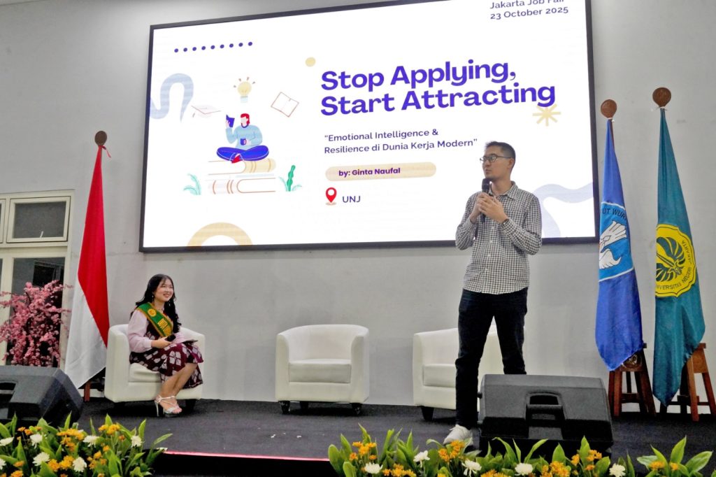 Jakarta, Humas UNJ — Universitas Negeri Jakarta (UNJ) menjadi tuan rumah penyelenggaraan Jakarta Job Fair Goes to Campus 2025, sebuah kegiatan yang bertujuan memperluas akses kerja dan memperkuat kompetensi sumber daya manusia muda. Acara ini berlangsung selama dua hari, pada 23–24 Oktober 2025, bertempat di Lantai 3 GOR UNJ, Kampus B Rawamangun.
