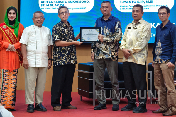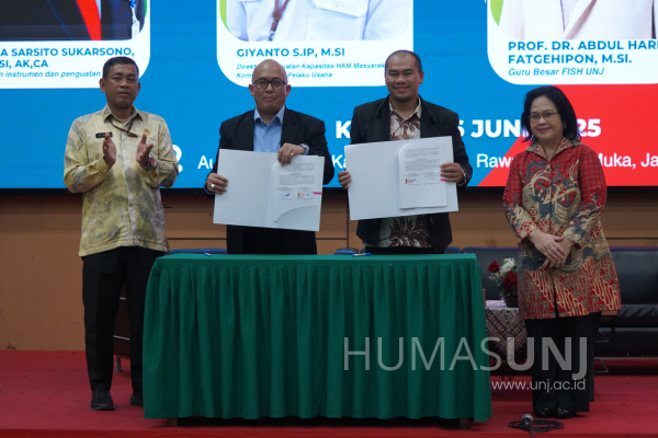 Acara dilanjutkan dengan penandatanganan kerja sama antara UNJ dan Kementerian HAM sebagai bentuk kemitraan strategis ke depan.