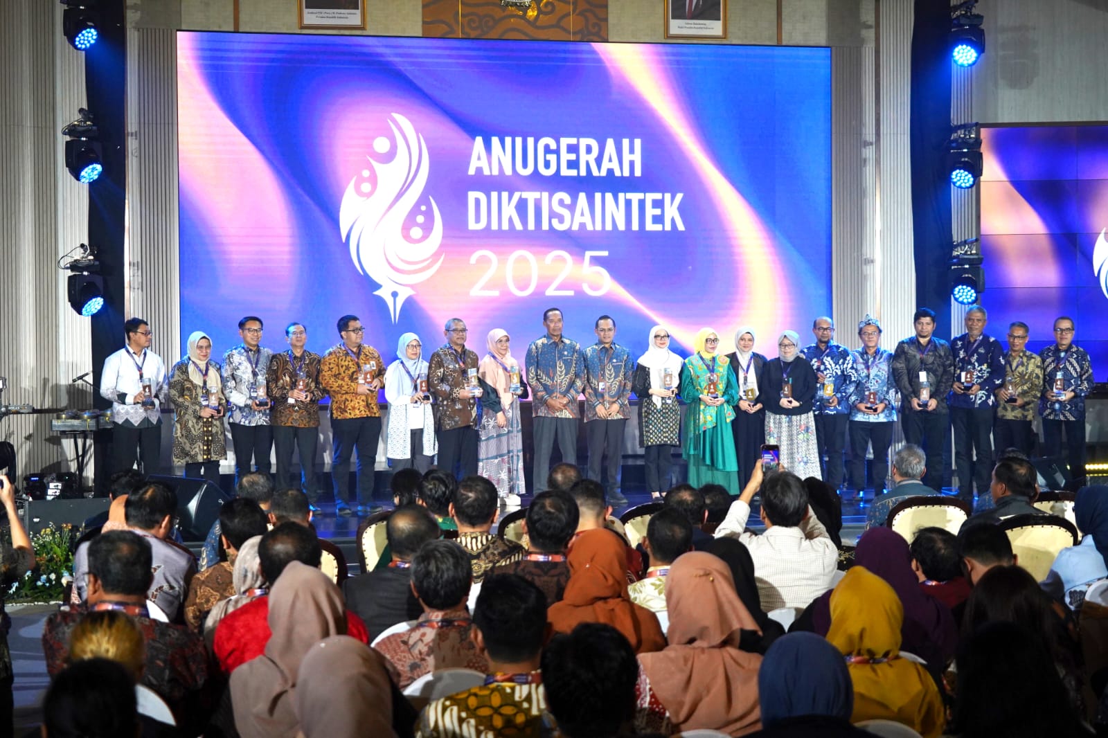Foto: Vera Utami Gede Putri, dosen Fakultas Teknik (FT) UNJ saat menerima penghargaan Anugerah DIKTISAINTEK 2025 (kedua dari kiri)