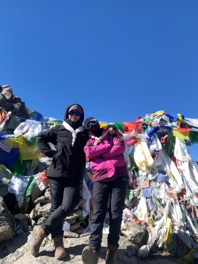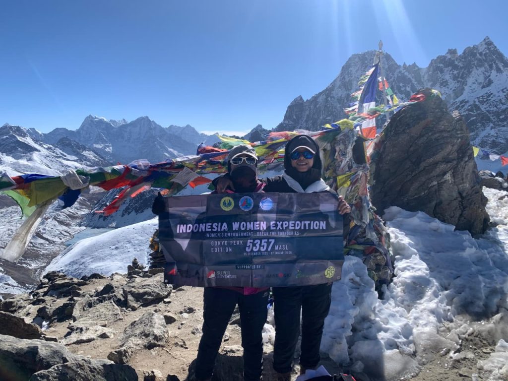 Nepal, Humas UNJ— Dua mahasiswi Universitas Negeri Jakarta (UNJ) kembali mengharumkan nama almamater di kancah internasional. Dua pendaki putri dari Keluarga Mahasiswa Pecinta Alam (KMPA) Eka Citra UNJ, yakni Inas Kurnia Izzati (20) dan Siti Maulidah (21), berhasil mencapai puncak Gokyo Ri (5.357 mdpl) di Himalaya, Nepal, pada Rabu (24/12) pukul 11.38 waktu Nepal (NPT).