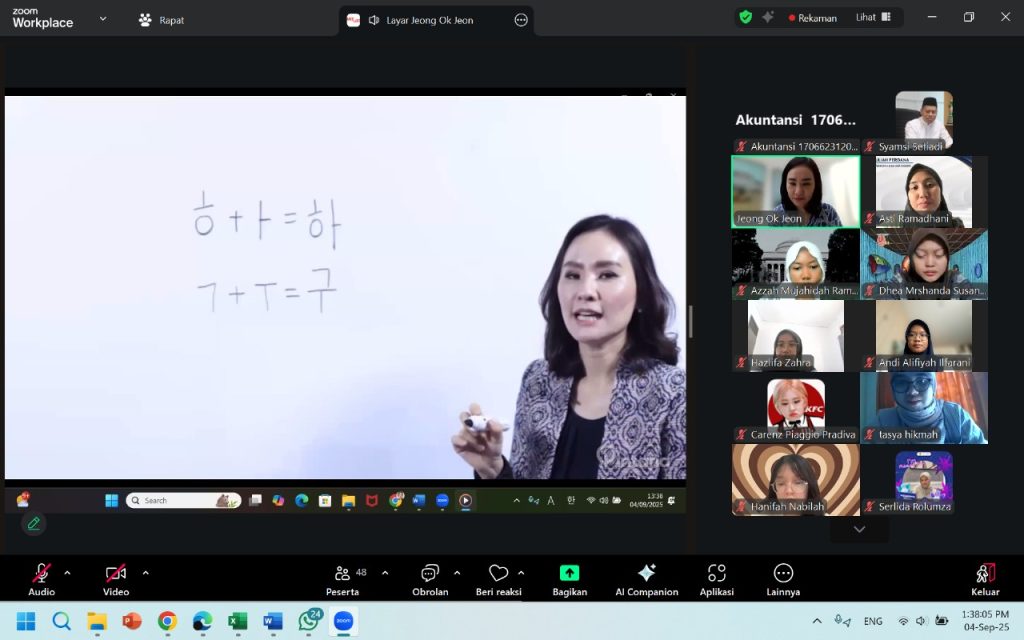 Jakarta, Humas UNJ – Fakultas Bahasa dan Seni (FBS) Universitas Negeri Jakarta (UNJ) resmi membuka Kelas Bahasa Korea sebagai mata kuliah pilihan pada Semester 123. Program ini terbuka untuk seluruh mahasiswa UNJ dan dilaksanakan secara daring dengan kuota terbatas hanya untuk 50 peserta.