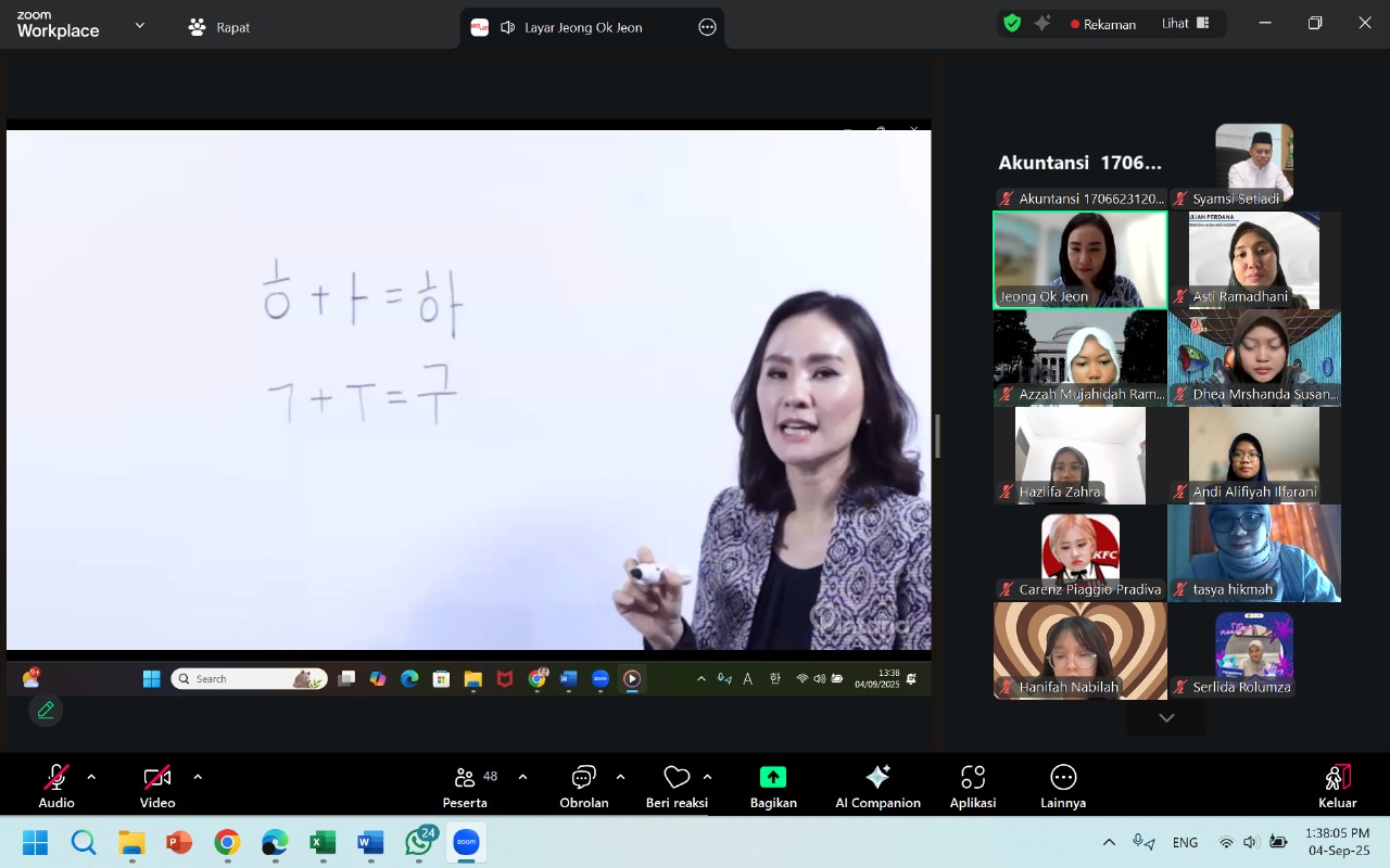 Sementara itu, Dr. Jeong Ok Jeon menyampaikan kegembiraannya dapat mengampu kelas perdana ini. “Semester 123 akhirnya ada kelas Bahasa Korea di UNJ. Kita tidak hanya akan belajar bahasanya, tetapi juga mendalami sejarah, budaya, seni, dan gaya hidup kontemporer Korea,”ujarnya.