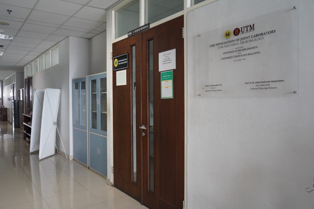 Pada kesempatan itu juga turut dilakukan penandatanganan papan nama laboratorium bersama “Peresmian Laboratorium Gabungan untuk Mikrobiologi Industri” oleh Rektor UNJ Prof. Komarudin yang diwakili oleh Prof. Ifan Iskandar selaku Wakil Rektor Bidang Akademik, Kemahasiswaan, dan Alumni bersama Vice-Chancellor of Universiti Teknologi Malaysia Prof. Ts. Dr. Mohd Shafry bin Mohd Rahim.