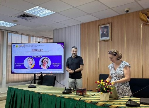Rangkaian kegiatan hari pertama, Kamis 23 Oktober 2025, dibuka oleh sesi bertema “The Landscape of International Scientific Publication” dari Teguh Budi Prayitno. Ia mengurai strategi pemilihan jurnal dari Q1 hingga Q4, teknik memanfaatkan Scimago dan Journal Finder, serta waspada terhadap jurnal predator. Kolaborator dari Aix Marseille University, Jeremy Castera dan Magali Coupaud, hadir memperkaya wawasan peserta melalui materi “Crafting a Winning Manuscript” yang menyoroti kekuatan judul, abstrak, serta struktur IMRaD yang meyakinkan. Sesi selanjutnya dikomandoi Ella Fitriani dengan topik “The Art of Data Visualization & Ethical Writing”, dilanjutkan sesi praktik “Journal Targeting & Abstract Writing” yang dipandu Rizhal Hendi Ristanto, dalam memperkuat keterampilan peserta dalam memilih jurnal dan merapikan abstrak.