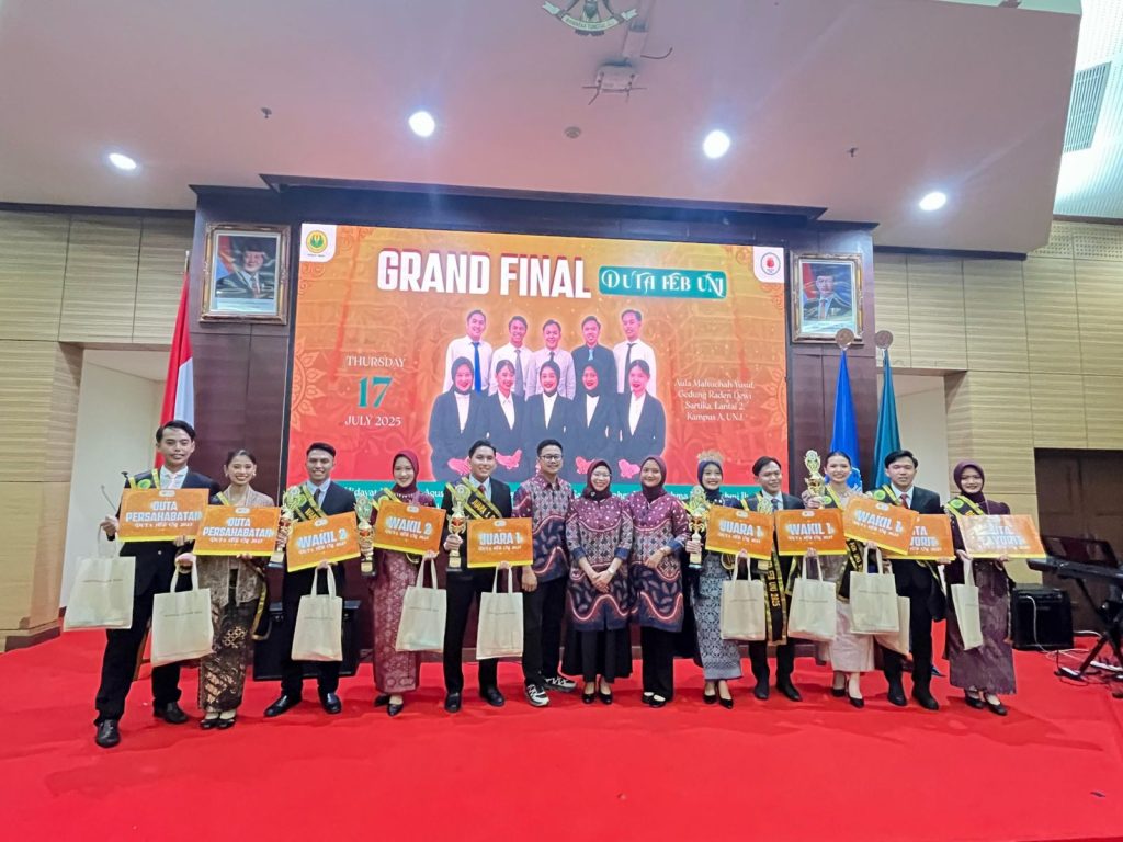 Jakarta – Humas UNJ. Fakultas Ekonomi dan Bisnis Universitas Negeri Jakarta (FEB UNJ) sukses menyelenggarakan acara puncak pemilihan Duta FEB UNJ 2025 bertajuk Grand Final Duta FEB UNJ 2025 pada Kamis, 17 Juli 2025, di Aula Maftuchah Yusuf, Gedung Dewi Sartika, Kampus A UNJ. Mengusung tema “Dare to Shine, Ready to Inspire”, kegiatan ini menjadi penutup dari rangkaian seleksi yang telah berlangsung sejak Juni 2025.