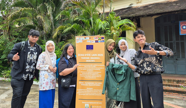 Jakarta, Humas UNJ —Program Studi Pendidikan Bahasa Prancis, Fakultas Bahasa dan Seni Universitas Negeri Jakarta (Prodi Pendidikan Bahasa Prancis FBS UNJ), kembali menorehkan prestasi gemilang di panggung internasional. Sebanyak lima mahasiswa dan satu dosen berhasil terpilih sebagai delegasi UNJ untuk mengikuti Program Sekolah Musim Panas (École d’Été) Erasmus+ 2025 yang diselenggarakan di Luang Prabang dan Vientiane, Laos, Asia Tenggara, pada 20–27 Juli 2025. Kegiatan ini merupakan bagian dari rangkaian kerja sama internasional strategis antara UNJ dan Université Savoie Mont Blanc (USMB), Prancis, dalam skema Erasmus+ yang berfokus pada penguatan kapasitas akademik dan jejaring global di bidang pendidikan bahasa Prancis.