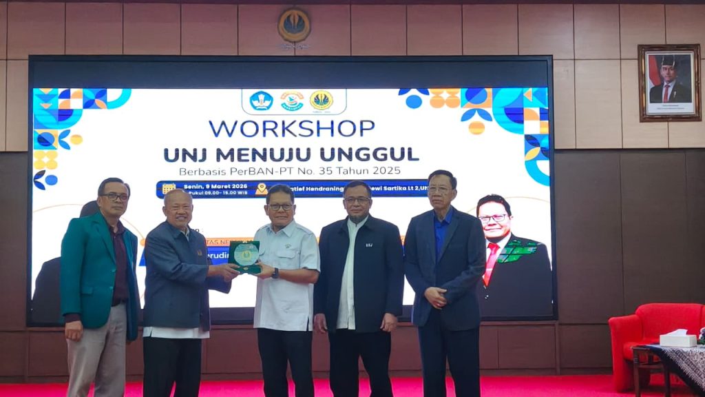Jakarta, Humas UNJ – Universitas Negeri Jakarta (UNJ) kembali menunjukkan komitmen serius dalam meningkatkan mutu pendidikan melalui penyelenggaraan “Workshop UNJ Menuju Unggul Berbasis Peraturan BAN-PT Nomor 35 Tahun 2025”. Kegiatan strategis ini diselenggarakan pada Senin, 9 Maret 2026, bertempat di Aula Latief Hendraningrat, Gedung Raden Dewi Sartika Lantai 2. Fokus utama dari kegiatan ini adalah mematangkan persiapan akreditasi institusi menuju predikat unggul.