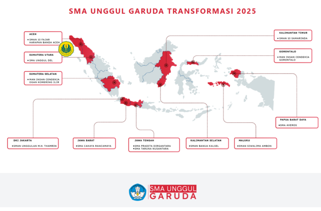 Jakarta, Humas UNJ — SMA Unggul Garuda Transformasi 2025 merupakan program strategis Kementerian Pendidikan Tinggi, Sains, dan Teknologi (Kemdiktisaintek) yang bertujuan memperkuat kapasitas Sekolah Menengah Atas agar mampu bersaing di tingkat global. Program ini dirancang untuk menyiapkan siswa agar dapat melanjutkan pendidikan ke universitas terkemuka dunia, khususnya di bidang STEM (Science, Technology, Engineering, and Mathematics). Selain itu, program ini juga berfokus pada peningkatan kompetensi siswa dan guru, serta penguatan tata kelola sekolah, dengan menitikberatkan pada tiga pilar utama, yaitu: penyeimbang akses, inkubator pemimpin, dan pengabdian kepada masyarakat.