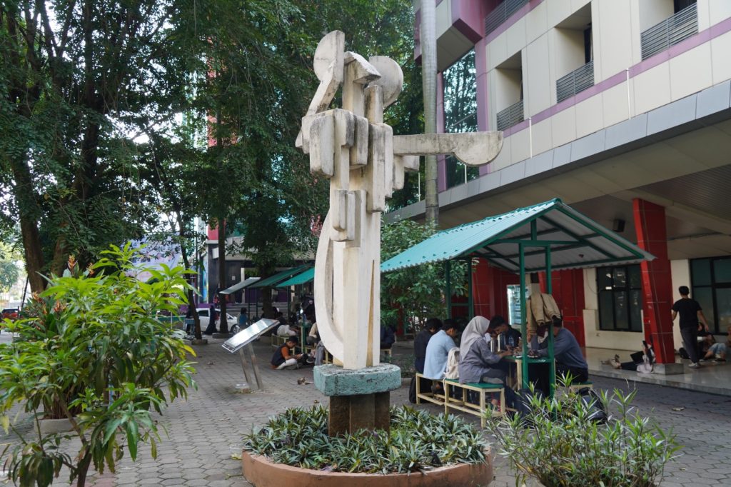 Sayangnya, bagian pedestrian yang dirancang dengan motif estetik belum sempat terealisasi hingga kini. Dirinya berharap makna dari pada patung tersebut tetap tersampaikan bagi manusia pembelajar di UNJ.