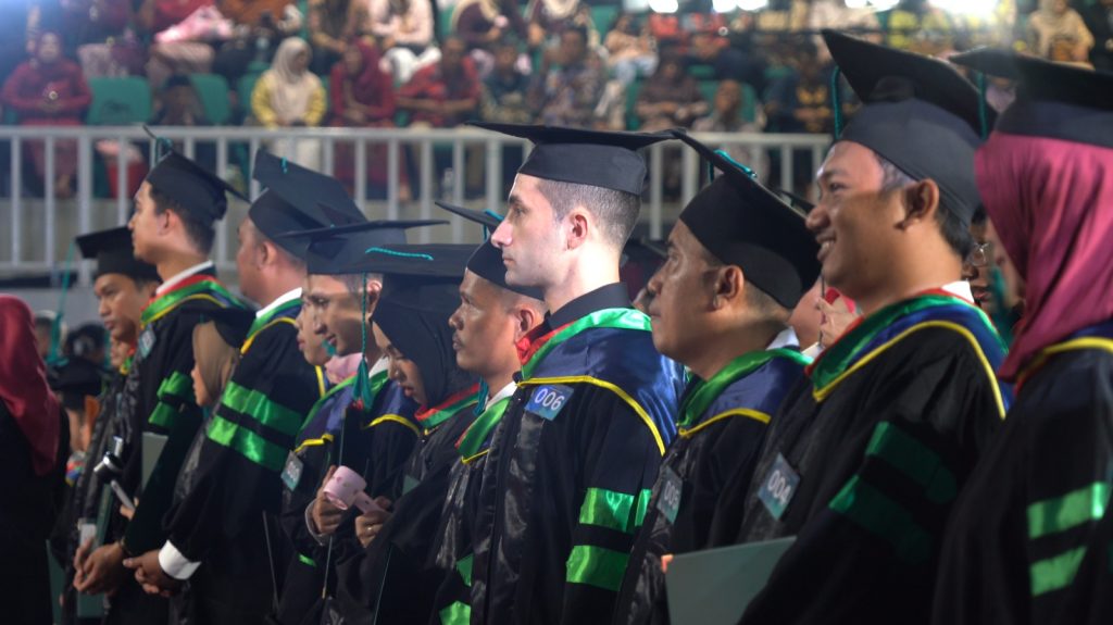 Jakarta, Humas UNJ – Universitas Negeri Jakarta (UNJ) kembali menorehkan catatan sejarah dengan meluluskan mahasiswa asing pertama yang memperoleh skema beasiswa penuh bagi warga Palestina. Mahmoud Ghassan Abdallah Alagha, mahasiswa Program Studi Magister Pendidikan Bahasa Arab, Fakultas Bahasa dan Seni (FBS) UNJ, resmi diwisuda pada Senin, 13 April 2026 pada Wisuda UNJ Tahun Akademik 2025/2026 Sesi I di GOR UNJ.