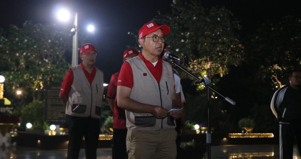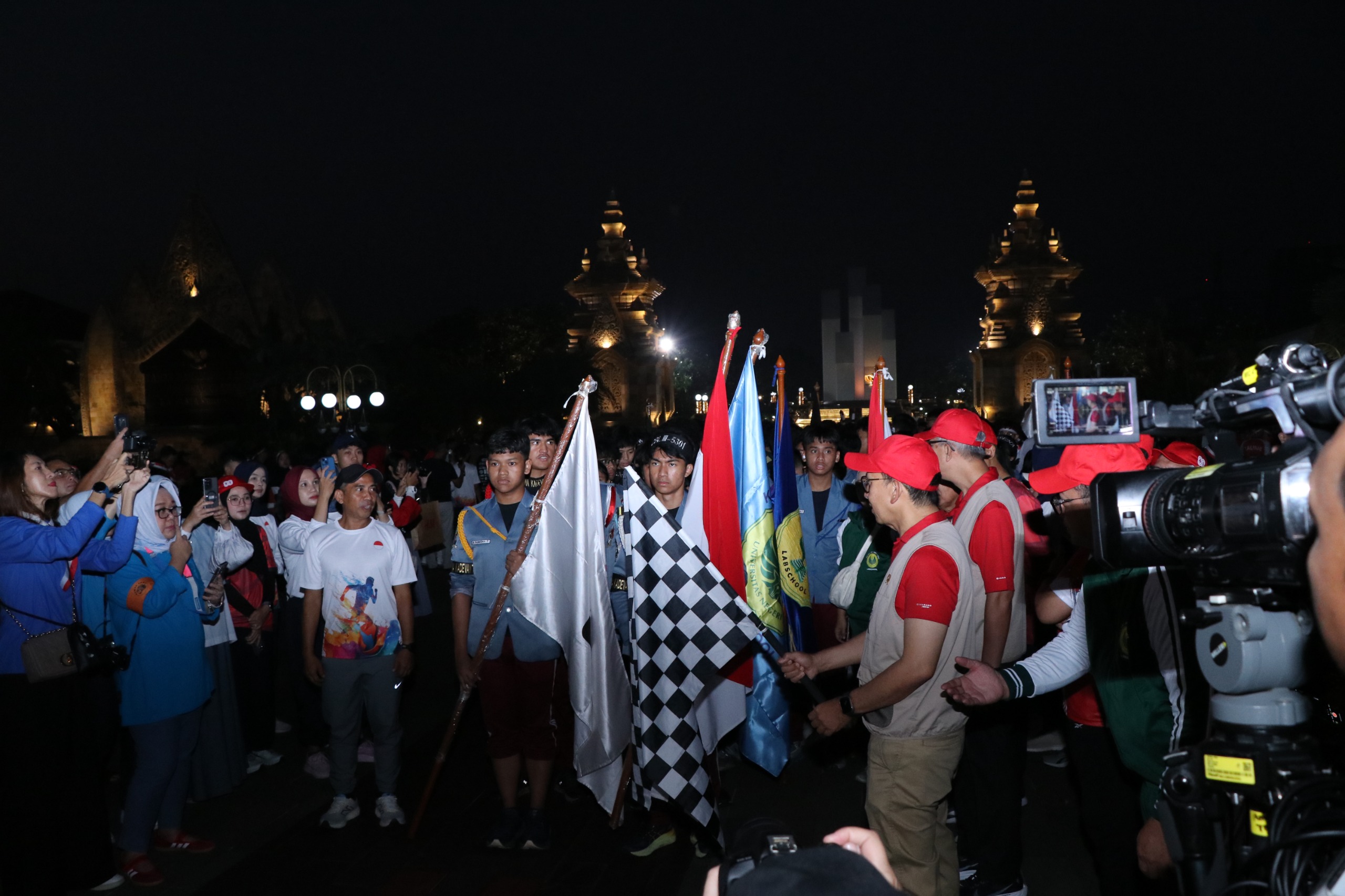 Usai menyampaikan amanat, Fadli Zon secara simbolis mengibarkan bendera start dan melepas peserta dengan doa agar kegiatan berjalan aman dan lancar.
