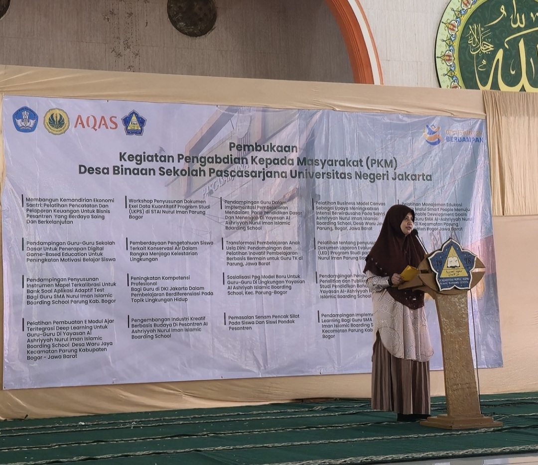 Bogor, Humas UNJ — Sekolah Pascasarjana Universitas Negeri Jakarta (SPs UNJ) resmi membuka kegiatan pengabdian kepada masyarakat yang berlangsung di Yayasan Al-Ashriyyah Nurul Iman Islamic Boarding School, Bogor, pada Minggu, 15 Juni 2025. Kegiatan ini turut dihadiri Direktur SPs, Wakil Direktur SPs Bidang 1, para koordinator prodi, dosen, dan staf di lingkungan SPs UNJ.