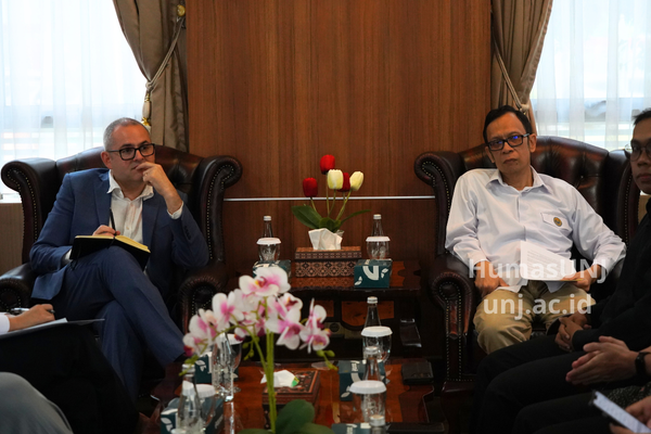 Jakarta, Humas UNJ – Universitas Negeri Jakarta (UNJ) menerima kunjungan dari Michele Carvallaro selaku Director Istituto Italiano di Cultura Jakarta, dalam rangka memperkuat hubungan bilateral di bidang pendidikan dan kebudayaan. Pertemuan yang berlangsung di Ruang VIP Gedung Rektorat UNJ pada Senin 20 April 2026 ini membahas berbagai potensi pengembangan kerja sama, mulai dari peningkatan program bahasa Italia hingga perluasan kolaborasi akademik antar fakultas.