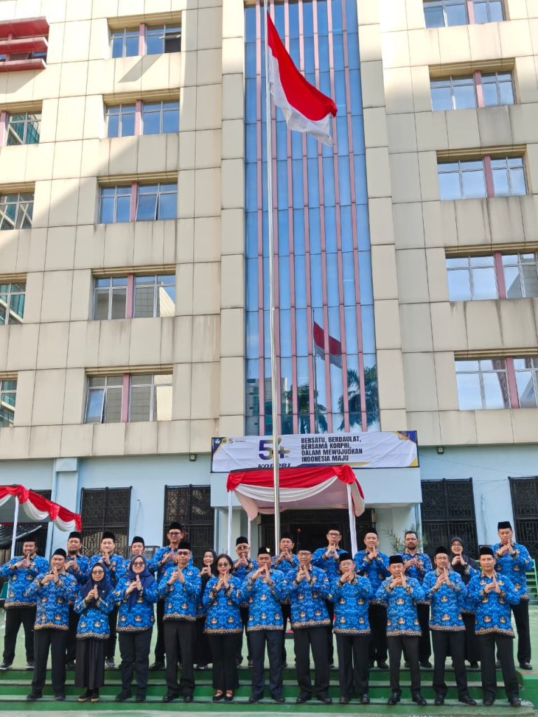 Jakarta, Humas UNJ – Universitas Negeri Jakarta (UNJ) menggelar upacara bendera dalam rangka memperingati Hari Ulang Tahun ke-54 Korps Pegawai Republik Indonesia (KORPRI) pada Sabtu, 29 November 2025. Upacara berlangsung di Halaman Perpustakaan UNJ Kampus A dengan mengusung tema “Bersatu, Berdaulat, Bersama KORPRI Mewujudkan Indonesia Maju”.
