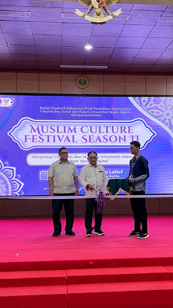 Jakarta, Humas UNJ– Program Studi Pendidikan Agama Islam Fakultas Ilmu Sosial dan Hukum Universitas Negeri Jakarta (Prodi PAI FISH UNJ) melalui Badan Eksekutif Mahasiswa (BEM) Prodi PAI resmi membuka Muslim Culture Festival (MCF) Season 11 pada Senin, 17 November 2025. Tahun ini, kegiatan mengusung tema “Menyemai Ukhuwah dan Khazanah Islam dalam Riak Muslim Digital” yang bertujuan memperkuat ukhuwah antarpeserta sekaligus memperluas wawasan keislaman di tengah perkembangan dunia digital.