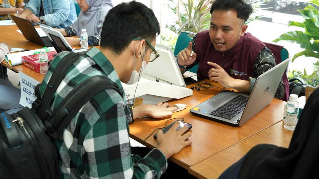 “Peserta cukup meletakkan jari di sensor alat, lalu sistem akan membaca tingkat stres dan daya tahan tubuh. Hasilnya bisa langsung dikonsultasikan dengan psikolog dari Dinas Kesehatan yang hadir di lokasi,” ujar Ahmad.