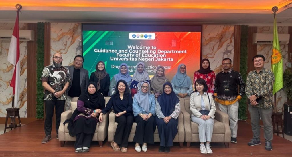Jakarta, Humas UNJ – Program Studi Bimbingan dan Konseling (BK), Fakultas Ilmu Pendidikan Universitas Negeri Jakarta (FIP UNJ) kembali menunjukkan kiprah globalnya dalam bidang pencegahan narkotika dengan menerima kunjungan studi dari UNODC Afghanistan bersama delegasi WHO, UNDP, The United Nations Assistance Mission in Afghanistan (UNAMA), serta Japan International Cooperation Agency (JICA) Afghanistan Office pada 10 Februari 2026 di Ruang Sidang lantai 3 Gedung Daksinapati FIP UNJ
