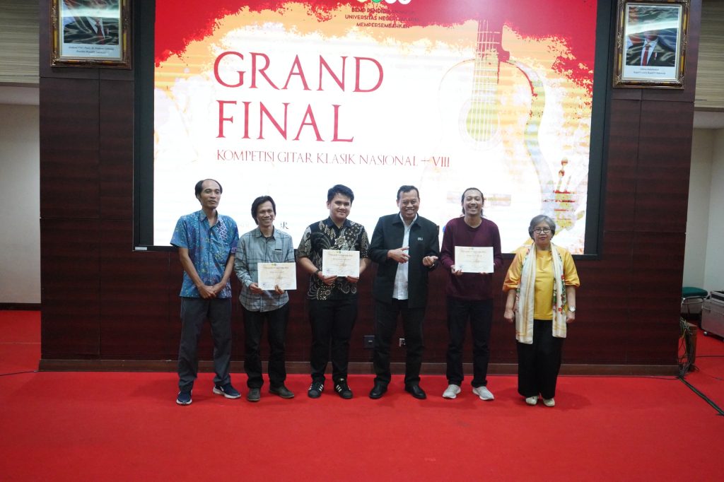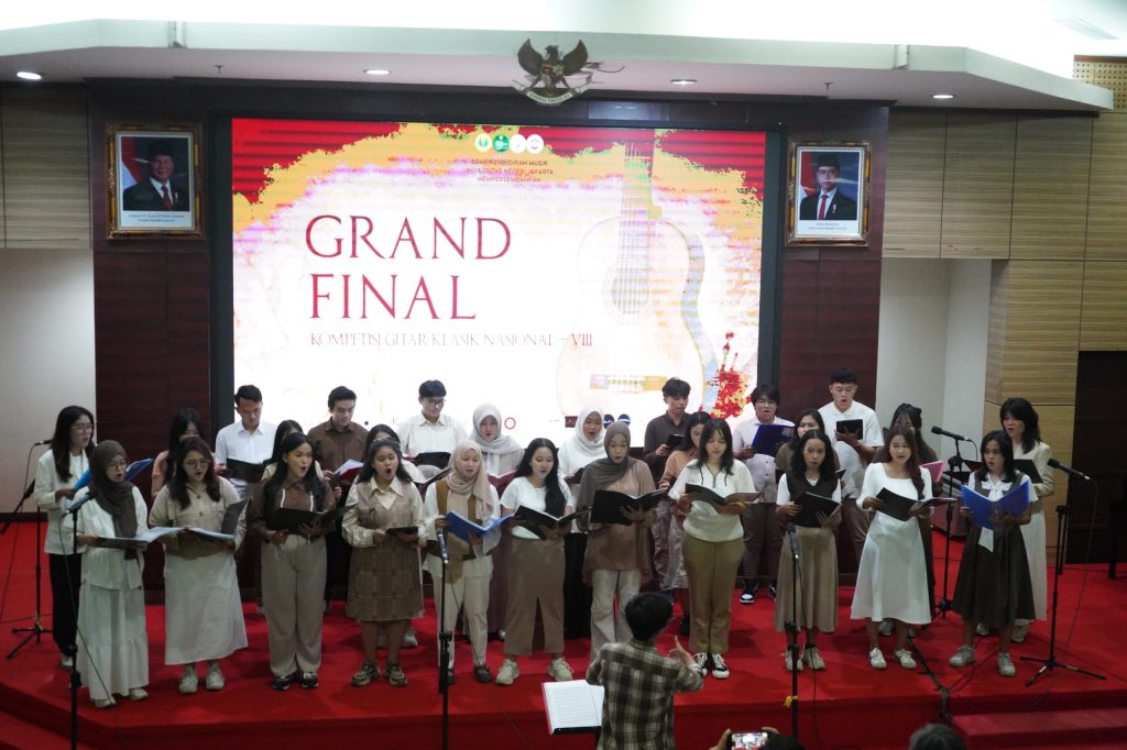 Jakarta, Humas UNJ – Program Studi Pendidikan Musik Fakultas Bahasa dan Seni Universitas Negeri Jakarta (Prodi Pendidikan Seni Musik FBS UNJ) kembali menggelar Kompetisi Gitar Klasik Nasional (KGKN) VIII 2025. Kegiatan ajang dua tahunan ini telah berlangsung selama 16 tahun. Tahun ini, kompetisi yang diselenggarakan oleh BEMP Pendidikan Musik FBS UNJ menghadirkan inovasi dengan membuka partisipasi dari luar negeri, dan menjadi event skala internasional.