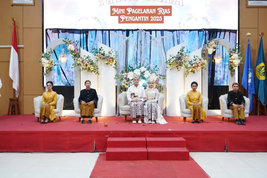 Dalam pagelaran ini, mahasiswa menampilkan rias pengantin adat Betawi, Sunda, dan Jogja. Penampilan pertama menghadirkan pengantin adat Betawi dengan prosesi Palang Pintu yang disertai pantun dan silat tradisional, menonjolkan karakter ceria budaya Betawi melalui busana bercorak cerah dan hiasan kepala care none. Selanjutnya, pengantin adat Sunda tampil dengan prosesi lincak endog, pecah kendi, dan ayam lepas sebagai simbol harapan keselamatan dan keharmonisan rumah tangga. Rias lembut dan busana lengkap dengan siger menjadi pusat perhatian.