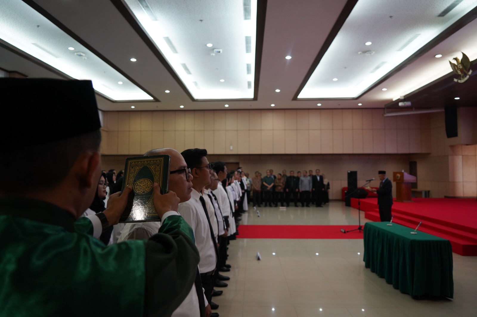 Dalam sambutannya, Prof. Komarudin menegaskan bahwa para PNS dan P3K yang telah diambil sumpah/janjinya harus bekerja secara penuh dan profesional. Ia juga mengimbau agar mereka segera menyelesaikan kontrak kerja dengan institusi atau pihak lain yang masih terjalin, demi menghindari pelanggaran terhadap ketentuan yang berlaku.