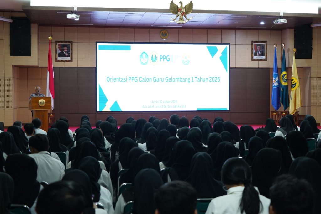 Jakarta, Humas UNJ – Direktur Sekolah Pascasarjana Universitas Negeri Jakarta (UNJ), Prof. Dedi Purwana menyambut hangat para mahasiswa baru PPG “Selamat datang di UNJ yang merupakan salah satu World Class University”. Sambutan tersebut disampaikan saat Orientasi PPG yang berlangsung di Aula Latief Hendraningrat, Kampus A UNJ, pada Jumat, 30 Januari 2026. Kegiatan Orientasi PPG Calon guru gelombang 1 tahun 2026 diikuti dengan penuh antusias oleh 386 Mahasiswa PPG.