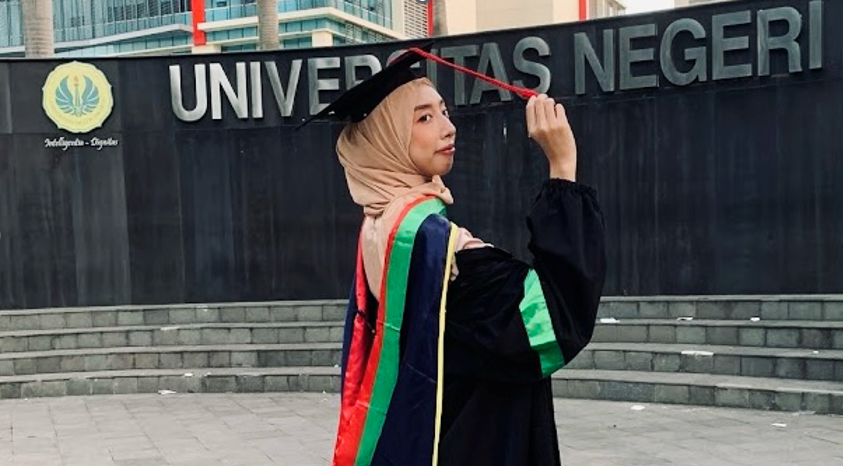 Jakarta, Humas UNJ – Keteguhan hati dan perjuangan Panjang yang ditempuh Aulawia Hidayati telah menghasilkan predikat menjadi wisudawan terbaik program sarjana dari Program Studi Pendidikan Agama Islam (PAI), Fakultas Ilmu Sosial dan Hukum Universitas Negeri Jakarta (FISH UNJ) dengan capaian Indeks Prestasi Kumulatif (IPK) 3,94.