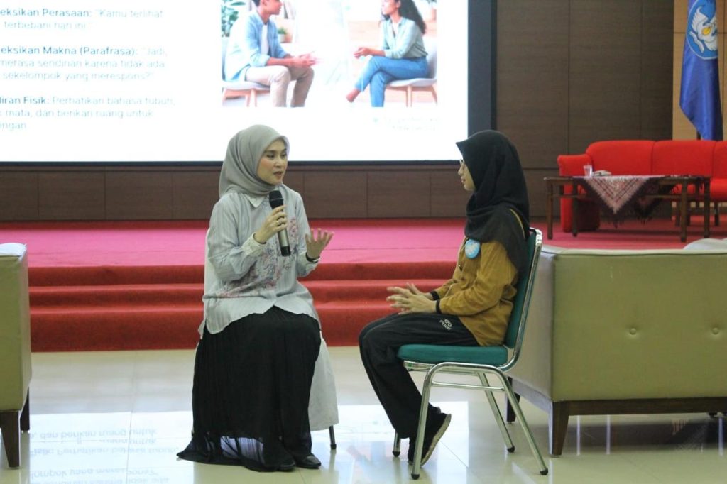 Pelatihan berlangsung secara interaktif dengan menghadirkan berbagai studi kasus yang dekat dengan kehidupan mahasiswa, seperti kelelahan akademik, trauma, hingga kesepian. Peserta diajak mengaplikasikan pendekatan look, listen, and link, yaitu mengenali tanda-tanda distress, mendengarkan secara empatik, serta menghubungkan individu dengan dukungan atau layanan yang tepat.