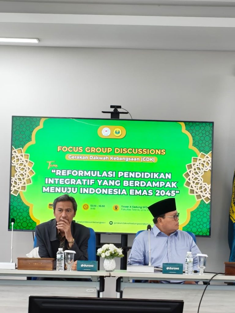 Jakarta, Humas UNJ – Universitas Negeri Jakarta (UNJ) bekerja sama dengan Dewan Pengurus Pusat Gerakan Dakwah Kebangsaan (GDK) menyelenggarakan Focus Group Discussion (FGD) bertajuk “Reformulasi Pendidikan Integratif yang Berdampak Menuju Indonesia Emas 2045”. Kegiatan ini dilaksanakan pada Rabu, 28 Januari 2026, bertempat di Ruang Pertemuan Lantai 10, Gedung A SFD, Kampus A UNJ.