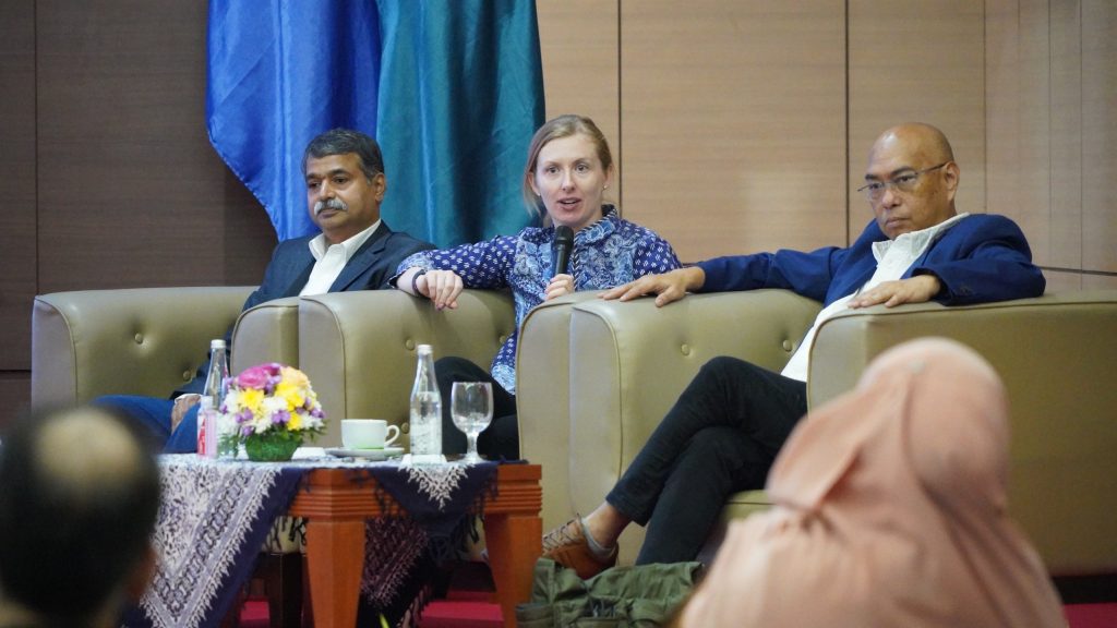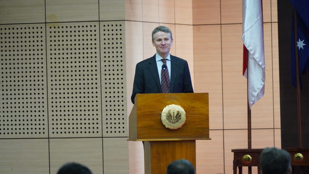 Turut hadir dalam kegiatan ini, Prof. Togar M. Simatupang, Sekretaris Jenderal Kementerian Pendidikan Tinggi, Sains, dan Teknologi, mewakili Menteri Pendidikan Tinggi, Sains, dan Teknologi RI. Dalam paparannya, ia menekankan pentingnya sinergi Indonesia–Australia dalam mencapai tujuan pembangunan berkelanjutan. “Indonesia memiliki visi Indonesia Emas 2045 untuk menjadi negara maju dan berdaya saing tinggi. Untuk mencapainya, kita harus mengatasi tantangan struktural seperti produktivitas tenaga kerja dan investasi yang belum efisien,” jelasnya.
