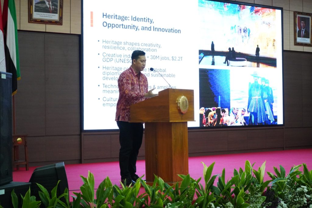 “Budaya adalah jangkar kita, dan inovasi adalah layar yang membawa kita maju,” ujarnya. Berdasarkan data UNESCO, tambahnya, industri kreatif dunia telah menciptakan lebih dari 30 juta lapangan kerja dan menyumbang sekitar 2,2 triliun dolar AS terhadap PDB global. Ia juga menyoroti beragam inovasi pelestarian budaya berbasis teknologi di Indonesia, seperti digitalisasi museum nasional, penggunaan realitas virtual di Candi Borobudur, dan pemanfaatan kecerdasan buatan untuk pelestarian bahasa daerah.
