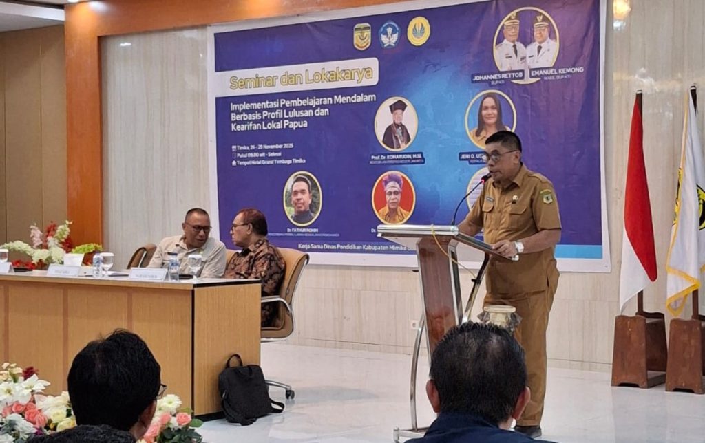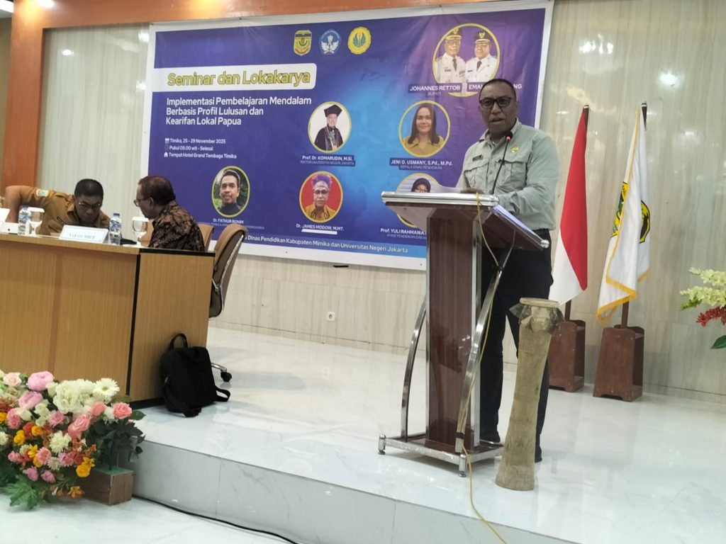 Mimika, Papua – Humas UNJ-Pemerintah Kabupaten Mimika bekerja sama dengan Universitas Negeri Jakarta (UNJ) menggelar Seminar Nasional dan Lokakarya Pembelajaran serta Lomba Inovasi Pembelajaran Tahun 2025 di Mimika, Selasa (25/11/2025). Kegiatan ini menjadi momentum strategis untuk meningkatkan kualitas pendidikan melalui inovasi pembelajaran dan penguatan kompetensi guru.