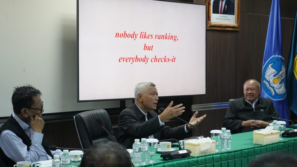 Dalam paparannya, Prof. Hermawan menekankan bahwa transformasi menuju WCU bukan semata-mata soal peringkat, melainkan menyangkut peningkatan kualitas riset, kolaborasi internasional, dan kontribusi nyata terhadap permasalahan lokal maupun global.
