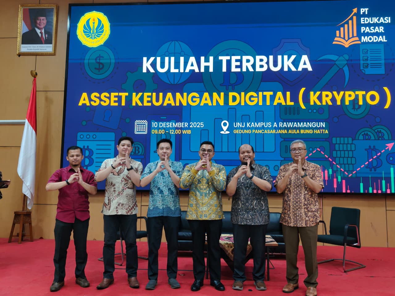 Jakarta, Humas UNJ – Universitas Negeri Jakarta (UNJ) bekerja sama dengan PT Edukasi Pasar Modal menggelar kuliah terbuka bertema Aset Keuangan Digital (Crypto). Kegiatan ini bertujuan meningkatkan literasi dan pemahaman pendidik serta mahasiswa mengenai pengelolaan dan perlindungan aset digital secara bijak dan berkelanjutan.