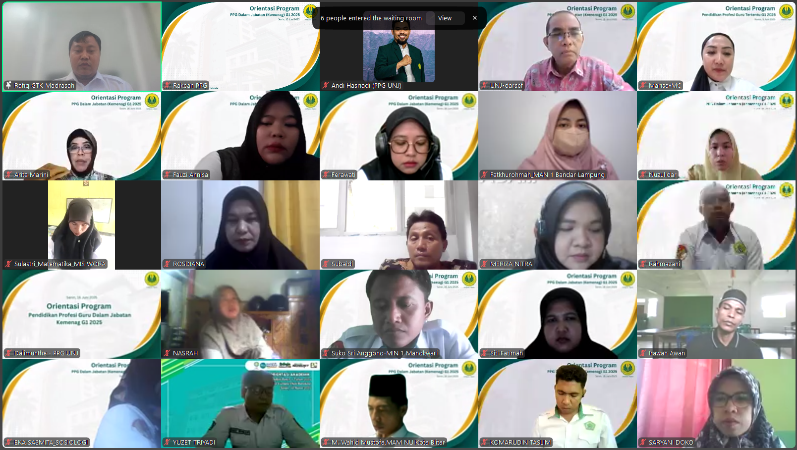 Kegiatan ini juga dihadiri oleh Dr. Ahmad Rafiq Zainun Mu’im, Kepala Subdirektorat Fasilitasi Profesi Guru, Direktorat Guru dan Tenaga Kependidikan Madrasah, Ditjen Pendidikan Islam Kemenag. Ia menyampaikan bahwa orientasi ini sangat dinantikan oleh para guru madrasah, terutama mereka yang telah lulus seleksi sejak 2018 namun baru mendapat kesempatan mengikuti PPG pada tahun 2025.