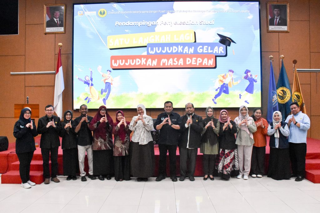 Jakarta, Humas UNJ – Universitas Negeri Jakarta (UNJ) melalui Direktorat Akademik bekerja sama dengan Pusat Layanan Psikologi dan Bimbingan Konseling (PLPBK) UNJ kembali menunjukkan komitmennya dalam mendukung keberhasilan studi mahasiswa dengan menyelenggarakan seminar motivasi bertajuk “Pendampingan Penyelesaian Studi: Satu Langkah Lagi Wujudkan Gelar dan Wujudkan Masa Depan”. Kegiatan ini dilaksanakan secara luring di Aula Bung Hatta pada Rabu, 8 April 2026.