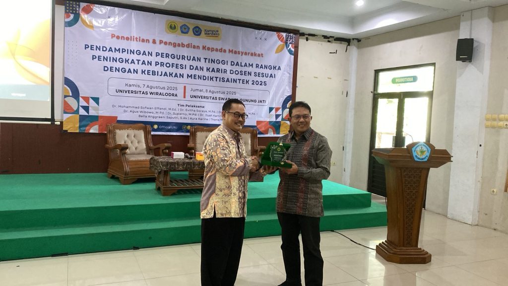 Indramayu, Humas UNJ – Komitmen terhadap peningkatan mutu pendidikan tinggi dan penguatan kapasitas sumber daya manusia kembali ditunjukkan oleh Universitas Negeri Jakarta (UNJ). Tim dosen, dan mahasiswa UNJ melaksanakan kegiatan Penelitian dan Pengabdian kepada Masyarakat (PkM) di Universitas Wiralodra (Unwir) Indramayu, Jawa Barat pada 7 Agustus 2025 dengan tema “Pendampingan Perguruan Tinggi Dalam Rangka Peningkatan Profesi dan Karir Dosen Sesuai Dengan Kebijakan Mendiktisaintek 2025”. Kegiatan ini menjadi wadah strategis untuk berbagi pengalaman dan mendampingi para dosen Unwir dalam pengembangan karir dan profesi, sejalan dengan kebijakan Menteri Pendidikan Tinggi, Sains, dan Teknologi (Mendiktisaintek).