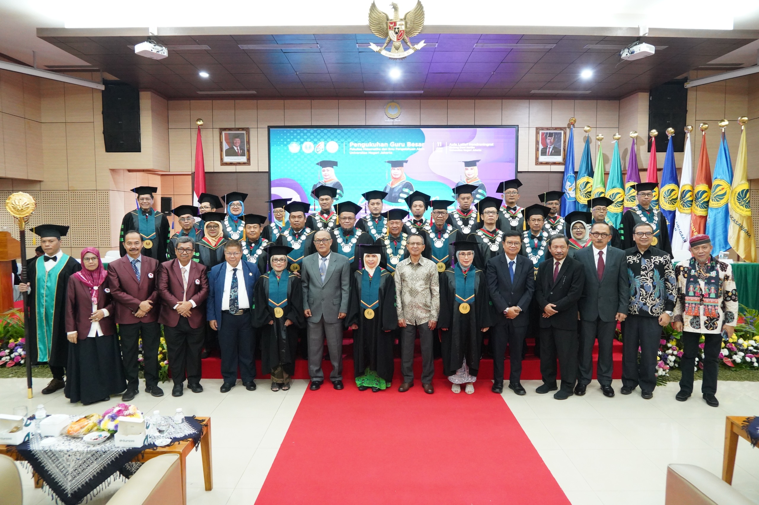 Jakarta, Humas UNJ — Universitas Negeri Jakarta (UNJ) kembali menorehkan prestasi akademik dengan mengukuhkan tiga guru besar dari Fakultas Matematika dan Ilmu Pengetahuan Alam (FMIPA) dalam Sidang Terbuka Universitas yang digelar secara khidmat di Aula Latif Hendraningrat, Kampus A Rawamangun, pada Rabu, 11 Juni 2025.