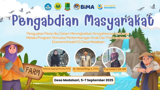 Medalsari, Humas UNJ — Universitas Negeri Jakarta (UNJ) sukses melaksanakan kegiatan pengabdian kepada masyarakat bertajuk “Penguatan Peran Ibu dalam Meningkatkan Kesejahteraan Keluarga melalui Program Stimulasi Perkembangan Anak dan Pemberdayaan Ekonomi Kreatif” di Desa Medalsari, Kabupaten Karawang. Kegiatan ini diselenggarakan pada 5 – 7 September 2025.