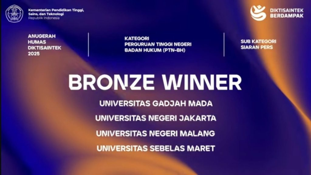 Diraihnya Anugerah Humas Kemdiktisaintek Tahun 2025 ini semakin mengukuhkan posisi Universitas Negeri Jakarta sebagai perguruan tinggi yang adaptif terhadap dinamika komunikasi publik, sekaligus menegaskan peran strategis kehumasan dalam mendukung transformasi pendidikan tinggi Indonesia yang berkualitas, berdaya saing, dan berkeadilan.