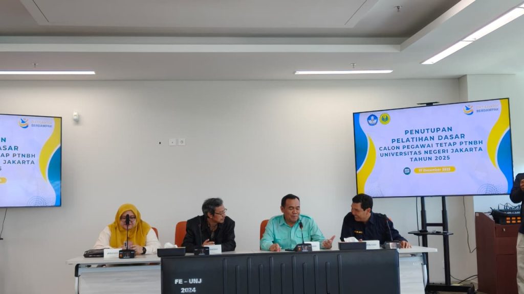 Jakarta, Humas UNJ – Universitas Negeri Jakarta (UNJ) resmi menutup Pelatihan Dasar Calon Pegawai Tetap Perguruan Tinggi Negeri Badan Hukum (PTNBH) Tahun 2025 pada Rabu (17/12). Penutupan berlangsung khidmat dan menjadi penanda kesiapan para peserta untuk mengemban amanah sebagai pegawai tetap UNJ.