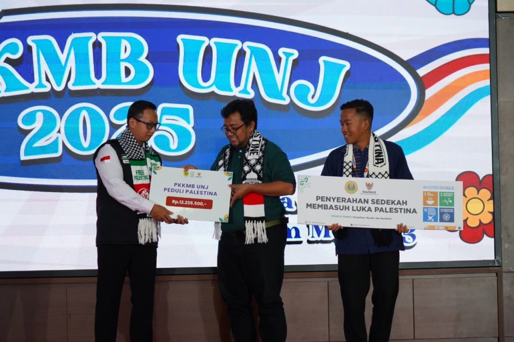 UNJ Serahkan Donasi Kemanusiaan untuk Palestina melalui BAZNAS RI pada Penutupan PKKMB 2025