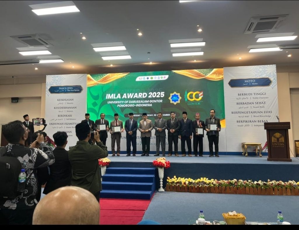 Ponorogo, Humas UNJ — Kiprah Universitas Negeri Jakarta (UNJ) dalam penguatan bahasa dan peradaban kembali mendapat pengakuan internasional. Wakil Rektor UNJ Bidang Kerja Sama dan Bisnis, Andy Hadiyanto, dianugerahi Penghargaan Internasional atas Pengabdian dan Pelayanan terhadap Bahasa Arab di Indonesia oleh Ikatan Dosen dan Pengajar Bahasa Arab Indonesia (IMLA), dalam rangka peringatan Hari Bahasa Arab Sedunia yang digelar pada 18 Desember 2025 di Hall Utama Universitas Islam Darussalam (UNIDA) Gontor, Ponorogo, Jawa Timur.