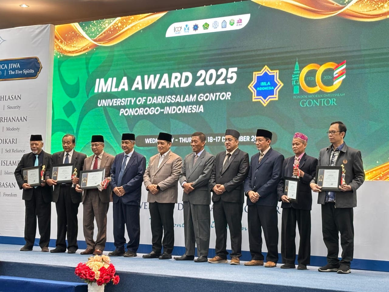 IMLA menyampaikan apresiasi dan terima kasih kepada seluruh pihak yang mendukung terselenggaranya kegiatan ini, khususnya Universitas Islam Darussalam (UNIDA) Gontor, sehingga penganugerahan penghargaan internasional dapat berlangsung dengan lancar dan sukses.